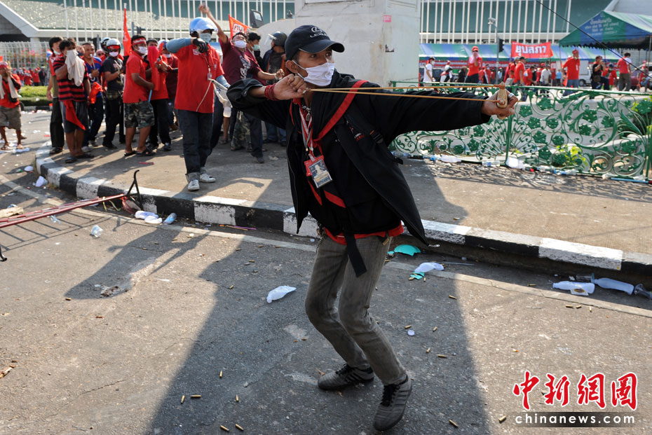 4月10日,泰國軍隊在首都曼谷對支持前總理他信的“紅衫軍”進行武力驅散,雙方爆發嚴重沖突,目前已造成18人死亡,數百人受傷。圖片來源:中國新聞網