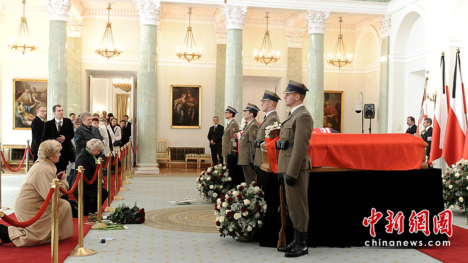 當(dāng)?shù)貢r間4月13日14時,波蘭總統(tǒng)夫婦的遺體被安放在總統(tǒng)府最大的圓柱廳供民眾瞻仰和悼念。總統(tǒng)卡欽斯基及其夫人的葬禮將于18日舉行。圖片來源:中國新聞網(wǎng)
