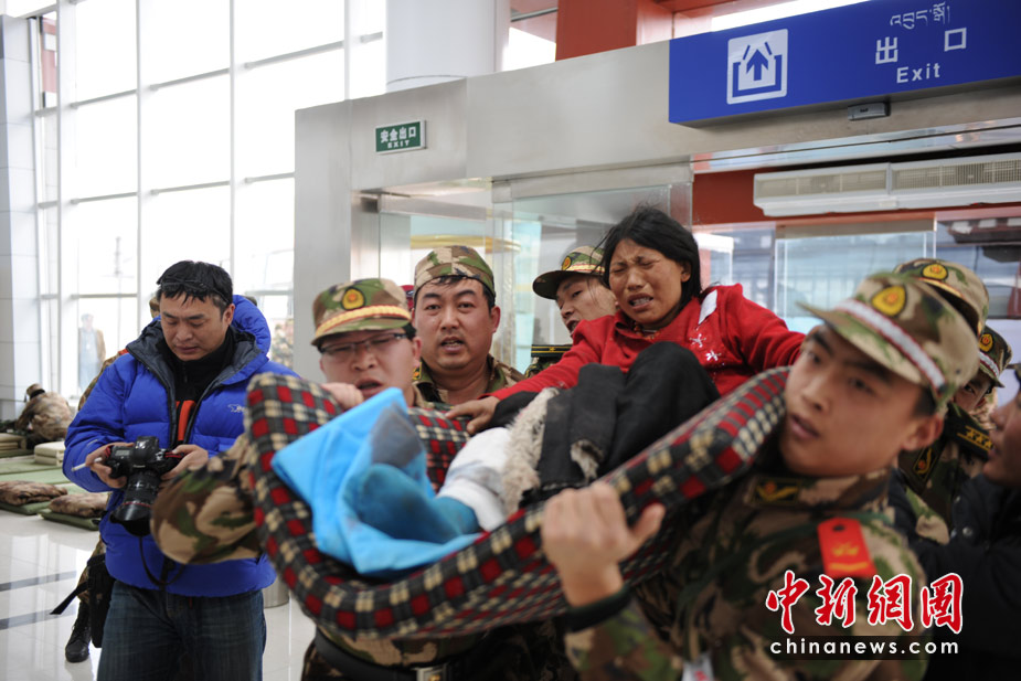 4月15日,玉樹地震傷員正源源不斷的從玉樹機(jī)場(chǎng)乘飛機(jī),被運(yùn)往成都等地救治。 中新社/中新網(wǎng)記者 符永康 攝