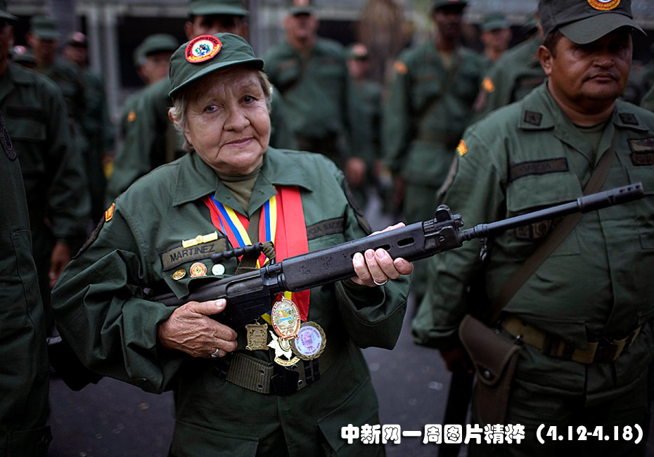 4月13日周二是委內瑞拉的“民兵日”,一位老民兵手持步槍在首都加拉加斯參加紀念活動。總統查韋斯當天發表講話,以此紀念他在八年前被政變短暫推翻后重新執政。