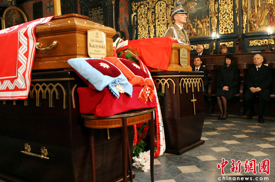 當地時間4月18日,卡欽斯基夫婦的葬禮在波蘭南部城市克拉科夫舉行。波蘭總統卡欽斯基及其夫人乘坐的專機10日在俄羅斯斯摩棱斯克失事,機上人員全部遇難。圖片來源:中國新聞網