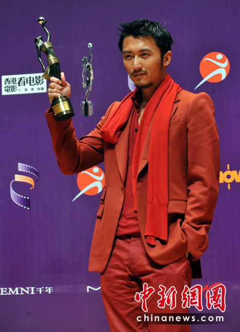 4月18日晚,“第二十九屆香港電影金像獎”頒獎典禮在香港文化中心大劇院隆重舉行,藝人謝霆鋒憑演出電影“十月圍城”奪得最佳男配角獎項。中新社發 鄧慶樂 攝