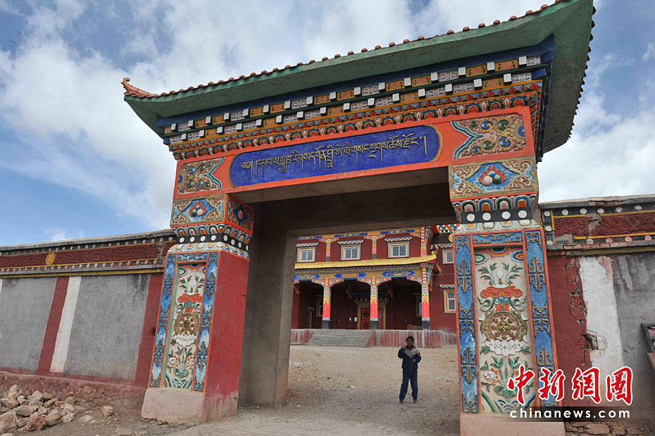 4月19日,新聞記者首次進入青海玉樹7.1級強烈地震的震中點上拉秀鄉日麻村,出乎意料的是全村無一傷亡,村中心的查榮寺和幾家民房只是出現裂縫,堪為奇跡。中新社發 賈國榮 攝