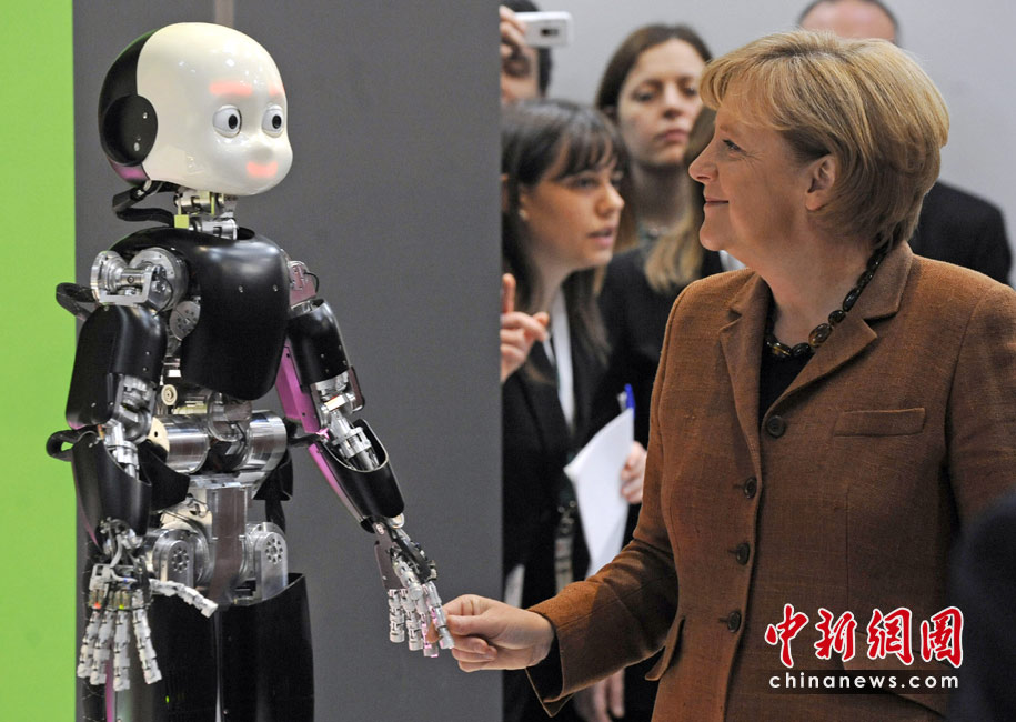 德總理工業博覽會上與機器人“逗樂”