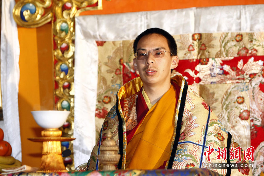 4月20日上午9時許,十一世班禪額爾德尼·確吉杰布在北京西黃寺,為青海玉樹地震遇難同胞舉行超度法會。中新社發(fā) 杜洋 攝