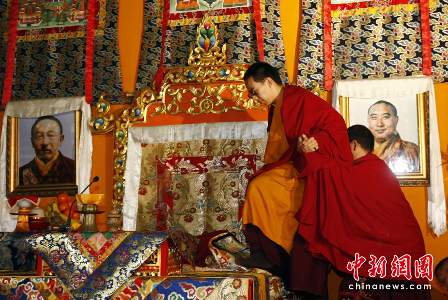 4月20日上午9時許,十一世班禪額爾德尼·確吉杰布在北京西黃寺,為青海玉樹地震遇難同胞舉行超度法會。中新社發 杜洋 攝