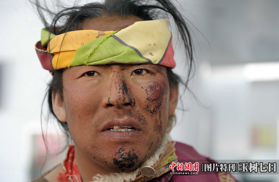 圖為4月15日下午,云南邊防總隊醫療救援隊剛下飛機立即投入傷員轉移工作,官兵們在玉樹機場從救護車上抬下地震傷員,進行轉移安置和治療。中新社發 陳文 攝
