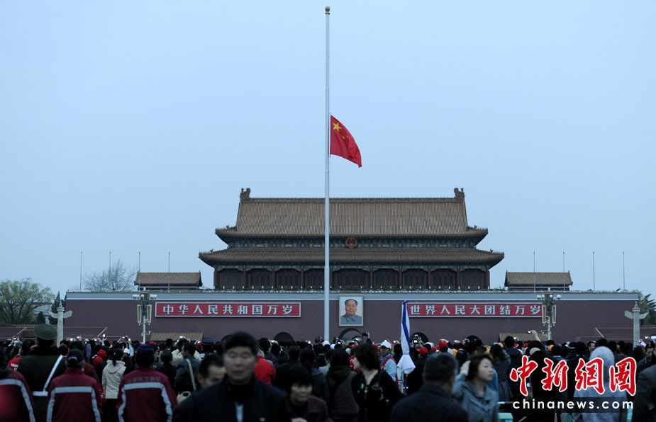 天安門廣場下半旗志哀