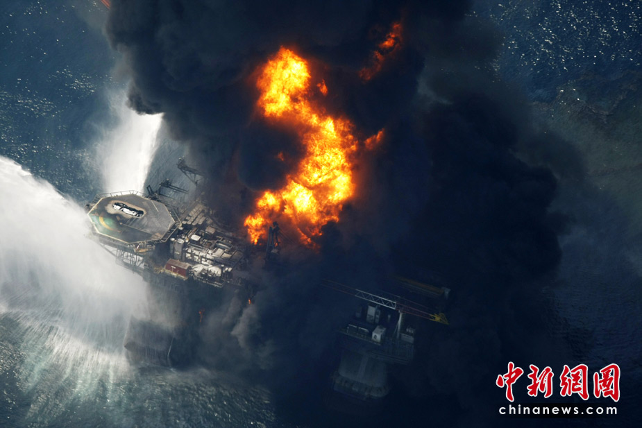4月21日,美國路易斯安那州一處海上鉆井平臺發生爆炸,造成至少11人失蹤、7人重傷。這起爆炸發生在20深夜,但直到21日中午,爆炸引起的大火仍在熊熊燃燒。目前鉆井平臺已嚴重傾斜超過70度,隨時可能傾覆入海。