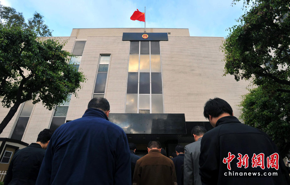 中國(guó)駐洛杉磯總領(lǐng)館降半旗悼念遇難同胞