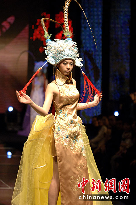 4月20日晚,首屆海西國際時(shí)裝周在福建石獅閉幕,本屆時(shí)裝周吸引了來自海峽兩岸的紡織服裝界企業(yè)家和知名服裝設(shè)計(jì)師。期間舉辦了12場(chǎng)時(shí)裝品牌和設(shè)計(jì)師作品動(dòng)態(tài)發(fā)布會(huì)。圖為模特展示古今潮流結(jié)合的服裝。王東明 攝