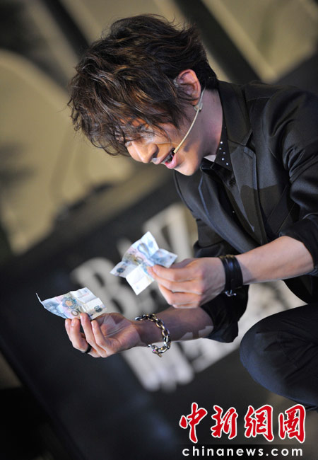 4月25日,由《時尚芭莎》雜志社主辦的第8屆“BAZAAR明星慈善夜”活動在上海舉行,圖為劉謙為現場嘉賓表演精彩炫目的魔術。 中新網記者 金碩 攝