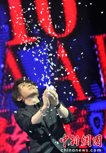 4月25日,由《時尚芭莎》雜志社主辦的第8屆“BAZAAR明星慈善夜”活動在上海舉行,圖為劉謙為現場嘉賓表演精彩炫目的魔術。 中新網記者 金碩 攝