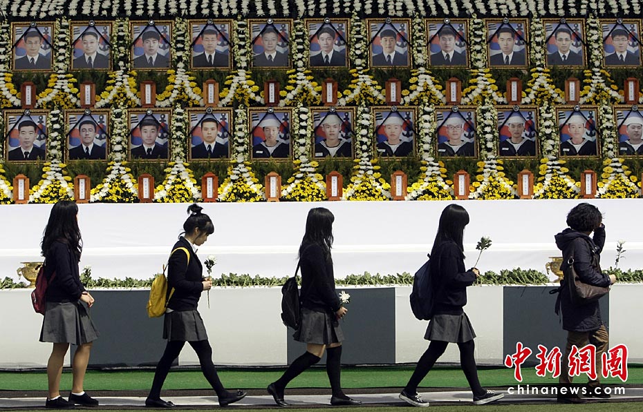 4月29日上午,韓國“天安”艦遇難官兵遺體告別儀式在平澤海軍第二艦隊司令部安保公園舉行。韓國總統李明博攜夫人參加告別儀式。圖片來源:中國新聞網