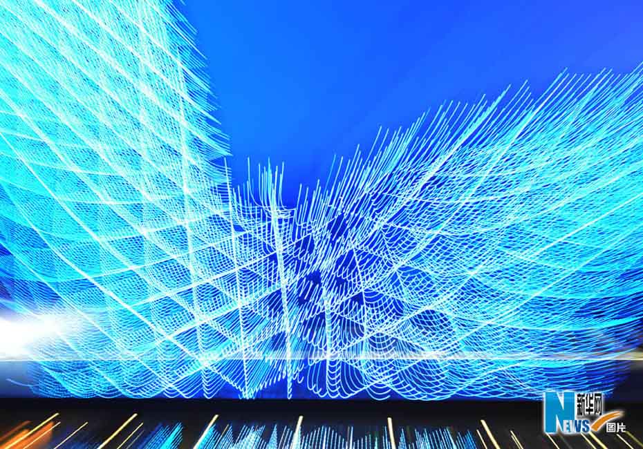 夜色下的世博園,迷離而夢幻。圖為世博軸陽光谷。圖片來源:新華網 郭毅攝