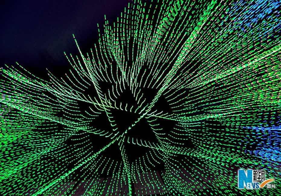 夜色下的世博園,迷離而夢幻。圖為世博軸陽光谷。圖片來源:新華網 郭毅攝