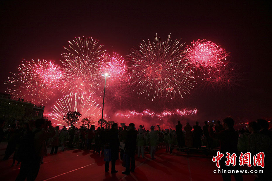 4月30日晚21時28分,在世博會焰火燈光表演開始。萬千煙花爭奇斗妍,黃浦江兩岸綿延3.28公里同時奏響火樹銀花不夜天的華彩世博樂章。圖片來源:中國新聞網(wǎng)