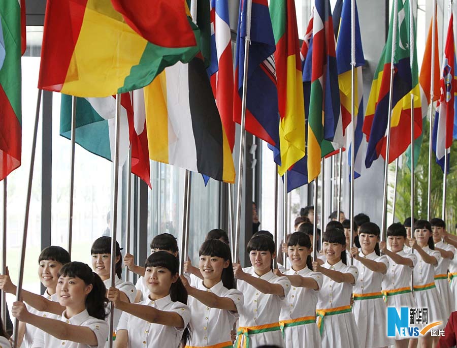 5月1日,中國2010年上海世博會開園儀式在上海世博園世博中心舉行。這是參展方旗幟方隊入場。 裴鑫 攝(新華網)