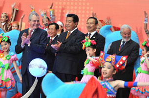 5月1日,上海世博園內的加拿大館開館,館內展出的《城市之心》、《城市印象》《神奇之水》等創意作品給觀眾留下深刻印象。中新社發 陳文 攝