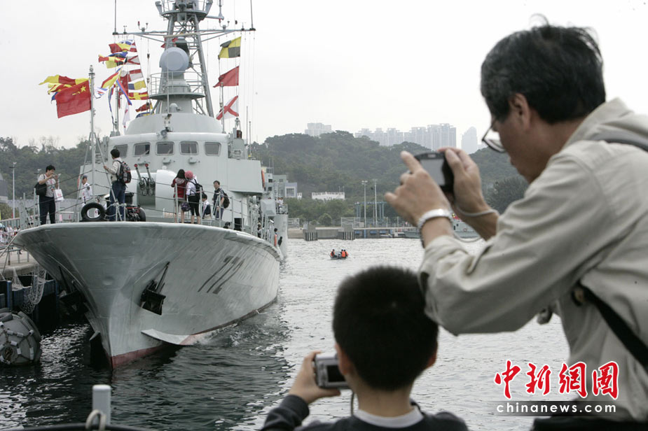 為慶祝“五一”國際勞動節,進一步增進與香港社會各界相互溝通與交流,中國人民解放軍駐香港部隊5月1日在昂船洲軍營舉辦開放日活動,開放兩艘導護艇和兩艘登陸艇供市民自由參觀。中新社發 張勤 攝