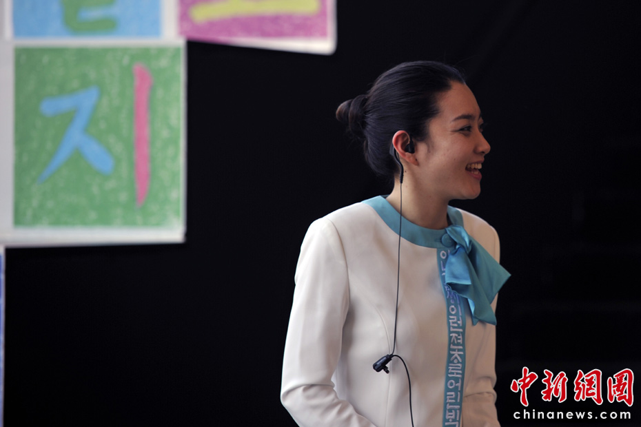 另外韓國館里的另一道風景是溫柔美麗的禮儀小姐。中新網記者 王紅綱 攝