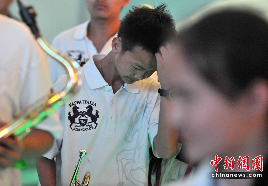 5月2日清晨,來自玉樹地震災區結古鎮的藏族小樂手巴東珠,含著姐姐在地震中不幸遇難的悲痛心情,與小白楊中學生管弦樂團來到上海世博會,為中國青海館觀眾獻上一曲《在那遙遠的地方》。他悲歡交融的情懷和演藝,感動全場。巴東珠之前還是青海省人民醫院為地震傷員做藏語翻譯的志愿者。中新社記者 賈國榮 攝