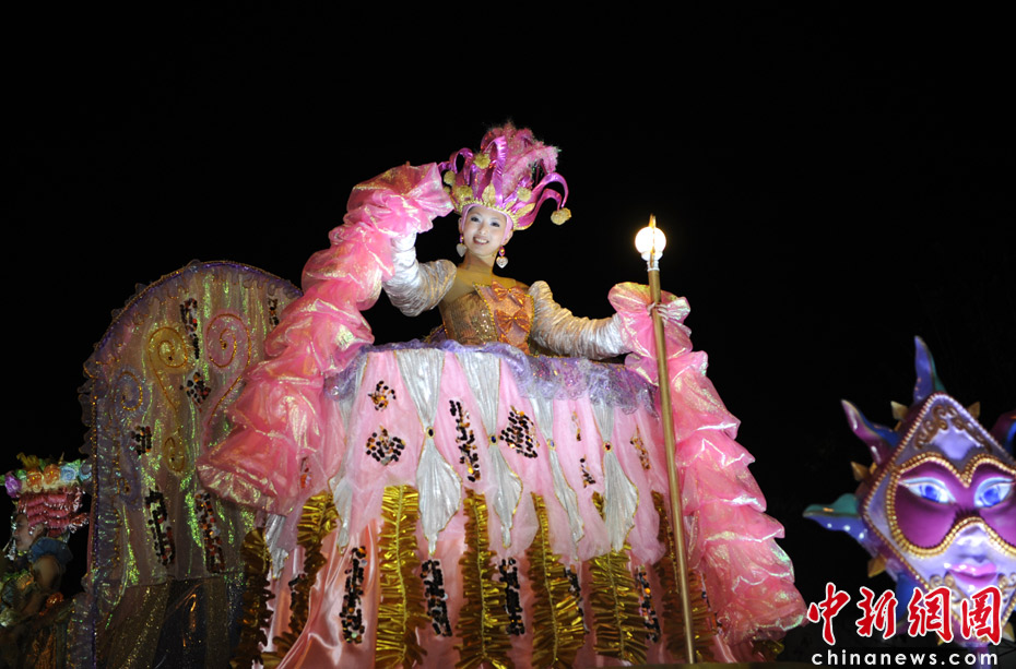 5月2日晚,由一輛輛充滿(mǎn)異域風(fēng)情的花車(chē)和身著盛裝的表演者組成的“歡樂(lè)盛裝大巡游”在世博園區(qū)舉行。中新網(wǎng)記者 王紅綱 攝