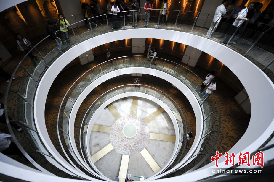 5月4日,上海世博園沙特館采用螺旋坡道引導觀眾。 中新社發 廖攀 攝