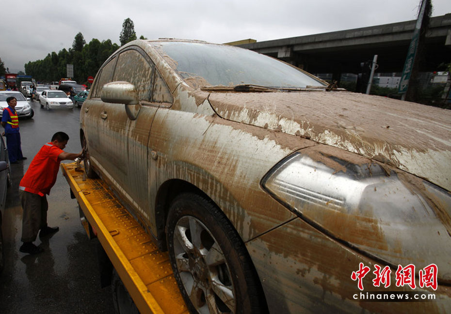 5月10日,廣州中海康城地下停車場遭水浸的汽車終于重新出水。受5月7日的大雨影響,廣州市東圃地區(qū)的中海康城的地下停車庫發(fā)生嚴(yán)重的水浸。經(jīng)過4天日夜不斷地抽水,5月10號上午,地下車庫里面的水終于干了。4天來一直轟鳴的水泵昨日終于停了下來。早晨7時許,眾車主陸續(xù)來到車庫,370多臺車橫七豎八排開,幾只塘虱在淤泥里挪動著。在拖車出庫的時候,不少車主淚流滿面。