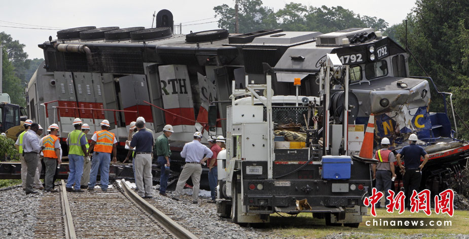 美國(guó)北卡羅來(lái)納州一列載有36人的通勤列車13日發(fā)生脫軌事故,造成至少13人受傷,火車頭和一節(jié)車廂起火。圖片來(lái)源:中國(guó)新聞網(wǎng)
