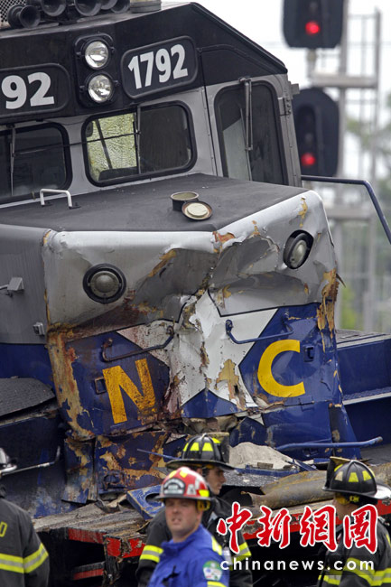 美國(guó)北卡羅來(lái)納州一列載有36人的通勤列車13日發(fā)生脫軌事故,造成至少13人受傷,火車頭和一節(jié)車廂起火。圖片來(lái)源:中國(guó)新聞網(wǎng)