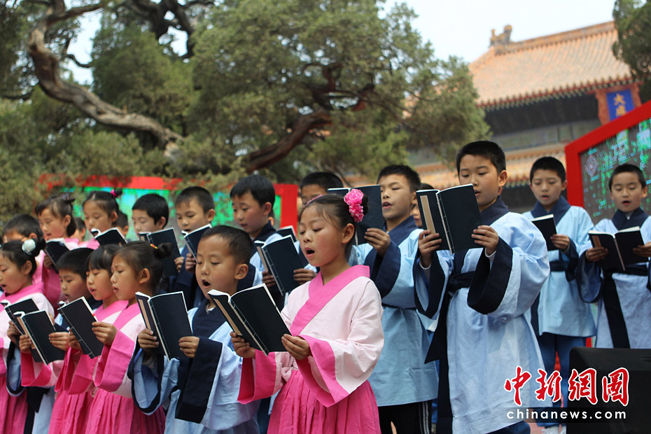 5月15日,首屆“兩岸漢字藝術(shù)節(jié)”新聞發(fā)布會在北京孔廟舉行。原文化部長、著名作家王蒙與臺灣文化總會會長劉兆玄等共同書寫漢字——“漢字藝術(shù)源遠流長”。 中新社發(fā) 蘇丹 攝