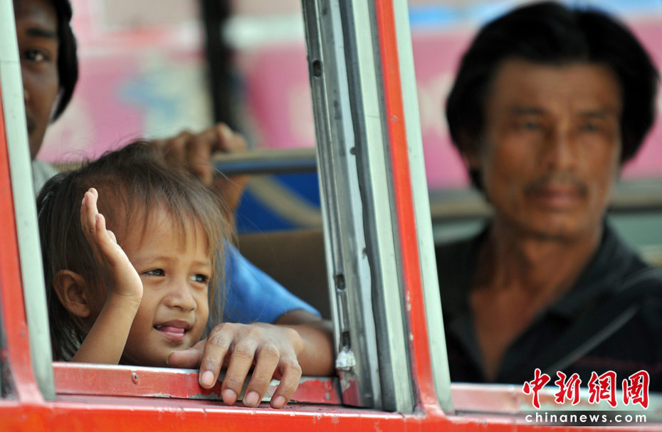 5月20日,數千名結束集會的外地“紅衫軍”示威者在曼谷拉差巴頌地區接受登記和安全檢查后,乘坐政府安排的車輛返回家鄉。