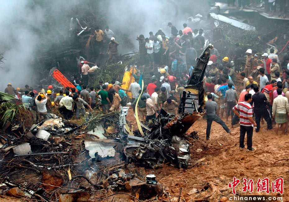 5月22日,印度一架客機在南部卡納塔克邦門格洛爾市降落時失事,造成至少160人喪生。目擊者稱,當天早上6點左右,這架飛機準備在馬拉格爾機場降落,但不知何故沖出跑道然后一頭扎到機場附近的叢林中起火爆炸。圖片來源:中國新聞網
