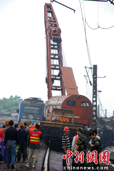 中新網(wǎng)東鄉(xiāng)5月23日電(艾永全 何柳斌 劉占昆)23日下午14時(shí),距離滬昆鐵路客運(yùn)列車脫線事發(fā)已經(jīng)12小時(shí),武警、消防、醫(yī)護(hù)、交警、特警仍在事故現(xiàn)場(chǎng)緊急救援。 劉占昆 攝