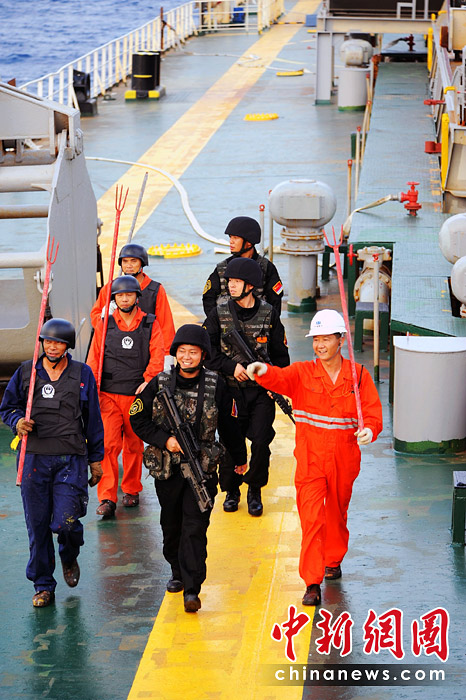 與特戰(zhàn)隊(duì)員一起巡邏,船員們輕松了許多。江山 攝