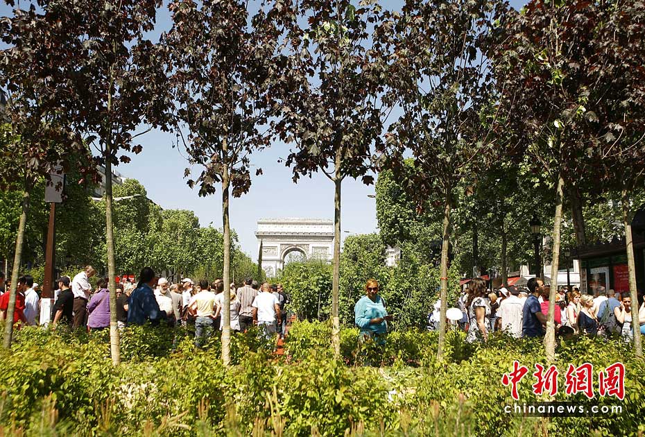 5月24日,法國總統薩科齊和妻子布呂尼參觀在法國巴黎舉行的“自然首都”展。該項展覽是由街頭藝術家加德·魏爾聯手法國“青年農民協會”和林業協會共同發起的的,將百余種農作物、樹木和動物“齊聚”法國首都巴黎的香榭麗舍大街,令這條“香街”變身“綠色的自然世界”。圖片來源:中國新聞網