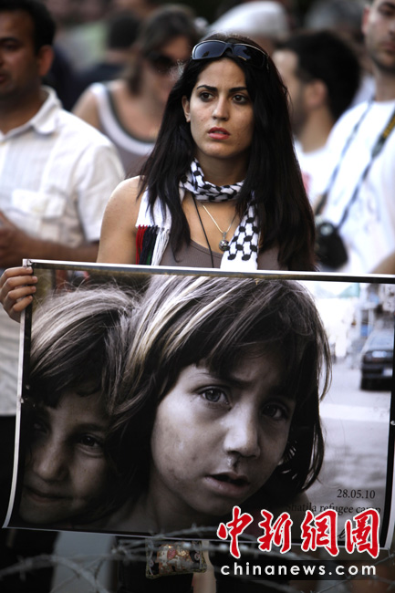 以色列海軍31日對(duì)國(guó)際人道救援船隊(duì)發(fā)動(dòng)襲擊,船上至少有9名支持巴勒斯坦的活動(dòng)人士被以軍打死,眾多國(guó)家和國(guó)際組織紛紛表示“震驚”,多國(guó)民眾走上街頭,對(duì)襲擊事件表示抗議。圖為在塞浦路斯,民眾在街頭游行抗議。