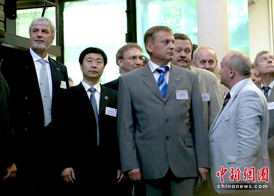當地時間6月3日14時,“火星-500”實驗艙最后一道艙門關閉,人類歷史上首次模擬火星載人航天飛行試驗就此拉開帷幕。圖為中國航天員科研訓練中心副主任白延強(左二)在進艙儀式上。中新社記者 田冰 攝