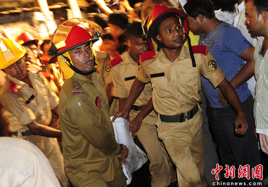 6月3日,孟加拉國首都達卡夜間發生一起重大火災,到目前為止已造成至少87人死亡,上百人受傷。圖為火災現場消防員抬出一具遇難者遺體。圖片來源:中國新聞網