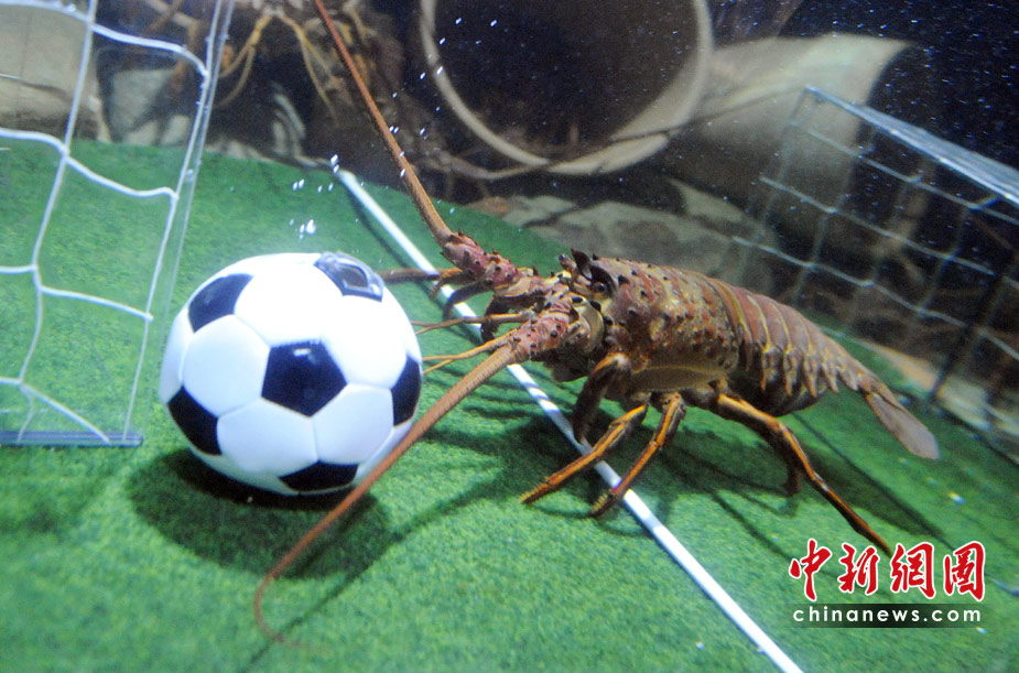 當(dāng)?shù)貢r間6月15日,德國北部,水族館里的海洋生物爭搶填滿飼料的足球。