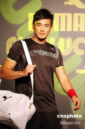 七月三十日,為迎接即將開幕的奧運盛事,一家國際知名運動品牌在海港城舉行展覽。圖為香港先生黃長興客串模特登臺演繹最新服飾系列。 中新社發 洪少葵 攝