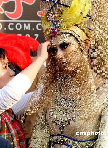 10月19日,“中國婚紗攝影金秋博覽會暨金榜時尚化妝師大賽”北京舉行。參賽的眾多化妝師推出不同款式的新娘妝、夢幻妝、創意妝以及時尚生活妝等,圖為模特展示造型師設計的夢幻新娘妝。中新社發 錢興強 攝