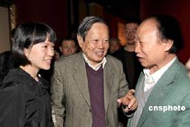 楊振寧夫婦冒雨觀畫展