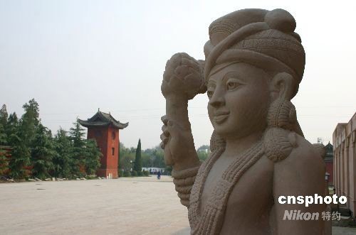 被譽為中印兩國“總理工程”的河南洛陽白馬寺印度佛殿,目前正在最后的裝修沖刺階段。近日,佛殿已經初露芳容。佛殿占地3450平方米,2006年4月動工,2007年9月開始殿內裝修。預計一個月后即可全部完工。中新社發 聽伊 攝