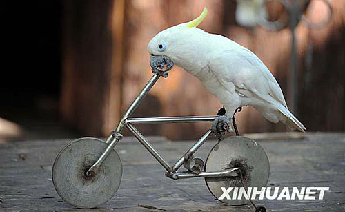 在云南省西雙版納傣族自治州景洪市野象谷景區內,有幾十只聰明的鸚鵡能進行騎自行車、投籃及撿拾垃圾等精彩表演,為游客增添了樂趣。新華社記者藺以光攝