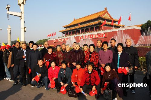 圖:中共十七大閉幕 游人爭相爭相拍照留念