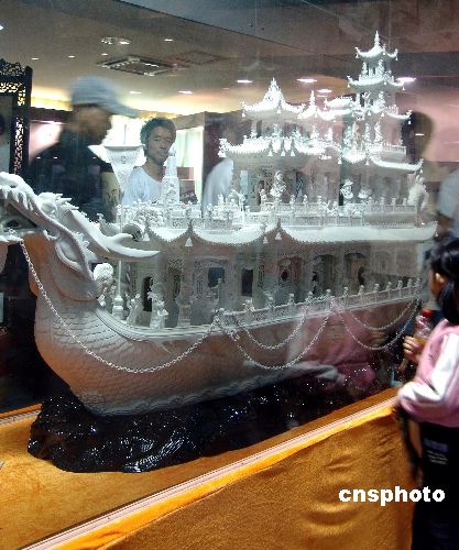 圖:景德鎮陶瓷博覽會展出《奧運盛會》瓷雕龍船