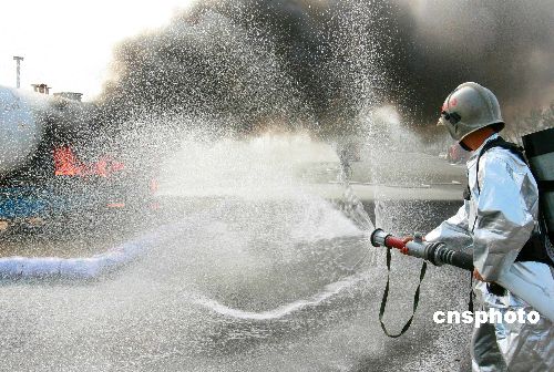 10月26日,蘇州工業園區舉行了一次針對道路運輸危險化學品事故應急救援實戰演練。該區公安、消防、衛生、環保安監等相關部門聯合參加了此次應急救援、快速反應和協調作戰等綜合演練。中新社發 蘇秀 攝