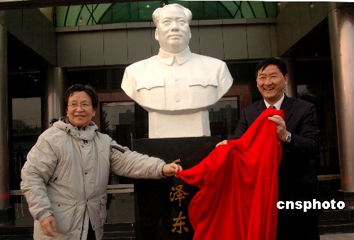 毛澤東之女李訥為晶牛新落成的毛澤東塑像揭幕